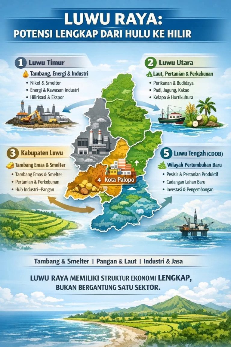 Luwu Raya memiliki potensi besar di sektor pertanian, perkebunan, pertambangan, pariwisata, dan kelautan yang dapat dikembangkan lebih maksimal.